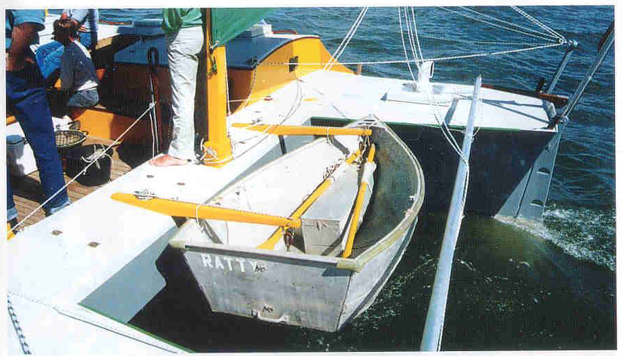 A close reach was her fastest point of sailing with speeds up to 8 knots 60° off the wind. With the wind right on the beam in a Force 4 she was sailing at 5 – 6 knots.