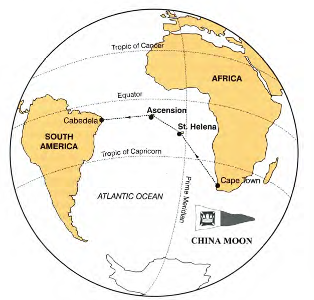 I can’t honestly say that China Moon was in all respects ready for sea but, after three years building her in South Africa, it was time to leave, a view the lenient immigration authorities wholeheartedly agreed with.