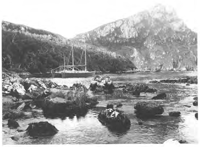Bahia Aguirre lies at the eastern end of the Beagle Channel, not far west of the Le Maire Straits. I had wanted to visit Staten Island for some time and this was our destination. Aboard China Moon, a junk rigged 38- foot catamaran, were Shirley Carter and her cat, Sinbad. Shirley had laid up Speedwell of Hong Kong in Brazil and joined me for a cruise south.