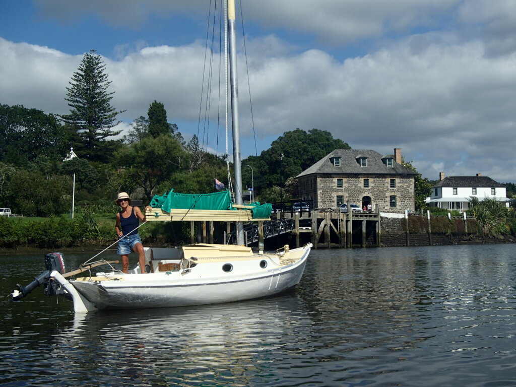 I took a month to part with Francis, sailing her in the Bay and enjoying being on her. We sailed her to Kerikeri which was magical – downwind sailing up the very narrow river, nearly all the way to the Stone Wharf where Murray, the builder, met us and came aboard. His toddler boat was an accomplished lady now.