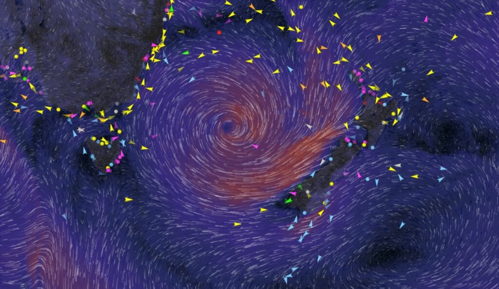It appeared that quite a few of our friends were tracking our passage with huge anxiety too, sending us later screenshots and emails showing and explaining where we were; caught nearly in the eye of a strong gale, the only vessel for hundreds of miles around, part of the massive weather system coming all the way from Australia moving South.