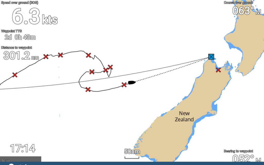 It transpired that the Customs were following our progress all the time, by tracking us via AIS, eventually notifying NZ maritime rescue centre of our ‘case’. They all had concerns for our safety, and were relieved when we eventually got going. They notified Bluff station (at the very South of the NZ) of our possible arrival, unsure of why we were sailing South instead of North. They seemed to be as pleased to see us as we were to see them! We were not sure why the RCCNZ (Rescue Coordination Centre) contacted Pete’s sister in the UK (our next of kin) by leaving a message on the phone to be called back (!) which caused her a lot of grief and distress.