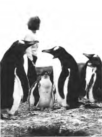 Falkland Harbour (60°43’S, 45°06’W) at the south end looked very promis ing, but the Pilot advised against it without giving any reasons. We sailed in to what appeared to be a well-protected spot, quite small, but none the worse for that. The anchorage was put to the test next day when a westerly gale came through and showed that we were safe and snug. The whole area around Falkland Harbour is a Site of Special Scientific Interest and landing is not permitted. The shore is covered with a large, mixed penguin colony of Gentoos, Chinstraps and Adelies, but there was no need to go ashore because Badger provided a splendid viewing platform.