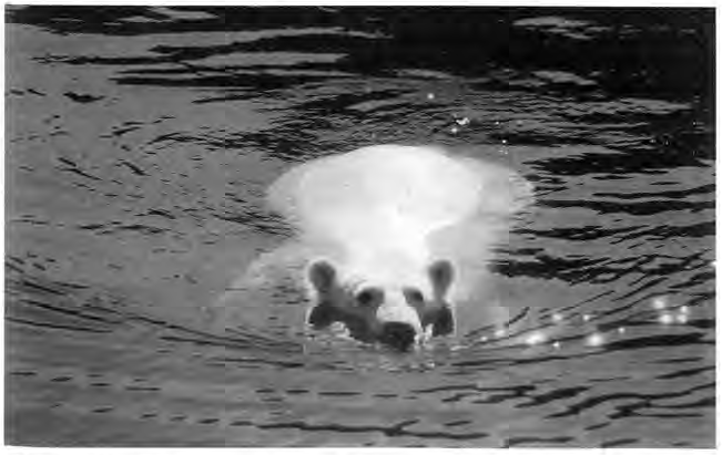 I awoke in the dim dawn to hear a piece of ice tapping against the hull and thought it wise to go and fend it off. Sleepily looking over the side, I was amazed to see a polar bear alongside. I dashed below to wake Annie and as we came back again, we saw the bear swimming for the shore. He climbed out and with a quick backward glance, disappeared over a rocky ridge. He was obviously as surprised as we were.