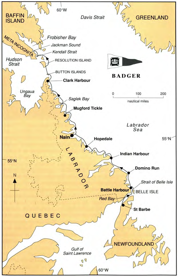 Our plan for the summer was to cruise up the Labrador coast in July, and then to cross the Hudson Strait to Frobisher Bay in August, before beating a retreat to the Azores in the autumn. These plans were totally dependent on the ice conditions. The previous year, the Strait of Belle Isle (separating Newfoundland from the Labrador) had been closed by ice until very late summer.