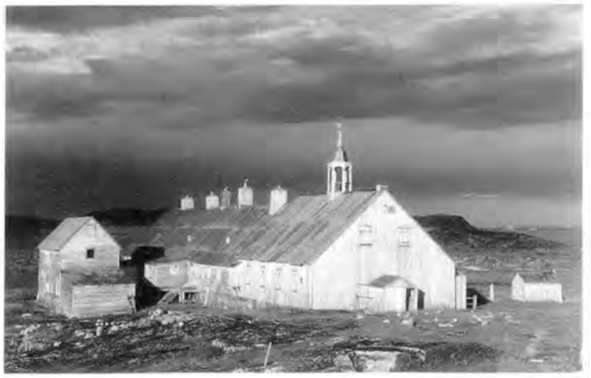 Hebron was a Moravian Mission station, which was abandoned about 1960. Many of the buildings are falling down, such as the Hudson Bay trading post, but the church and mission, similar in style to the one at Hopedale, is still intact. It has been recognised as an historic building and attempts have been made by the Government to stabilise its condition. But unless more effort is put in, it will soon start to deteriorate quickly, as several of the outside doors could not be closed and the roof cladding had gone from a large area. We were glad that the helicopter had disappeared, as the setting of these buildings, on a beautiful site, had to be appreciated in solitude.