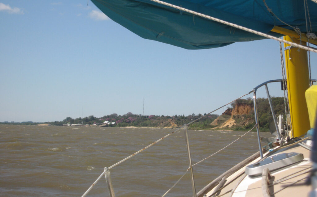 The next small town was Bella Vista at km 1060. We had a fresh following wind but we needed food and more importantly diesel. We anchored for the night off the town but the wind against current soon had us dragging into mid channel, necessitating re-anchoring in the lee of a sand bank across the river. The next morning the wind had eased so we anchored off the town again before going ashore. The first call was to the Prefectura (coastguard). The paperwork took nearly two hours. When we were eventually ushered into El Jefe’s office he more than made up for the frustration of waiting when he offered a photocopy of the latest changes to the channel ahead. Bella Vista is a pleasant sleepy riverside town, but it was a long walk out to the highway to get diesel. On returning to Pelican we found her slowly dragging back into midstream: time to leave.